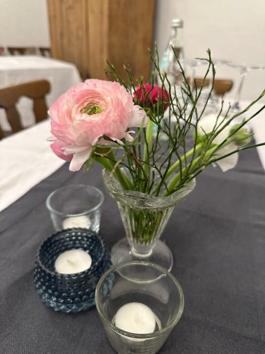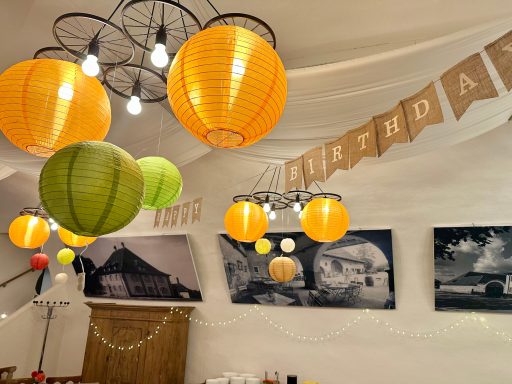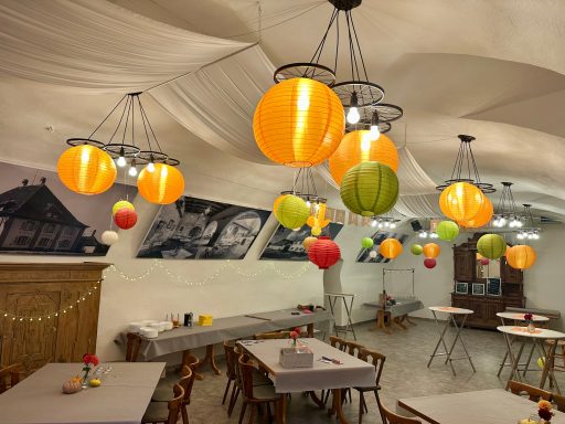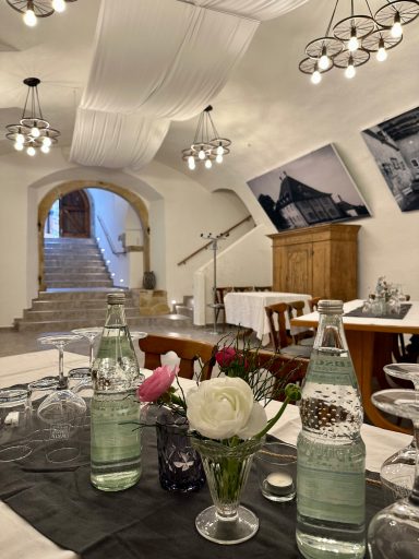 Unter dem Motto: "Fränkischer Abend" mit den Farben Rot/Weiß wurde mit ca. 45 Gästen ein 60. Geburtstag gefeiert. Im Hof wurden die Gäste zum Sektempfang und mit einer Fotobox begrüßt, bis es zum Fränkischen Menü hinunter in den beheizten Gewölbekeller ging.